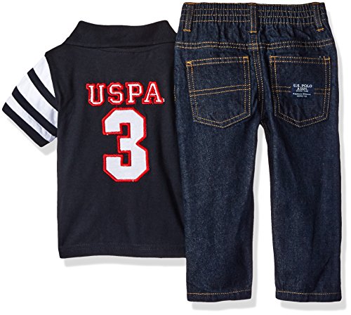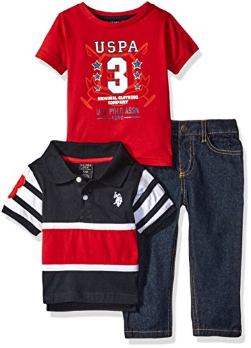 -. Binding : Apparel -. Brand : U.S. Polo Assn. -. Department : baby-boys -. Feature : Short sleeve cotton jersey polo has rib knit collar and cuff, vented hem slightly longer in back / Polo and t-shirt in newborn sizes come as creepers / Cotton jersey logo screen P.R.Inted t-shirt / 5 pocket denim jean has zip fly and logo embossed shank and rivets / Embroidered and woven logos -. Label : US Polo Assn. Children's Apparel -. Manufacturer : US Polo Assn. Children's Apparel -. Model : 00251 -. PackageQuantity : 1 -. ProductGroup : Apparel -. ProductTypeName : PANTS -. Publisher : US Polo Assn. Children's Apparel -. Studio : US Polo Assn. Children's Apparel -. Title : U.S. Polo Assn. Baby Boys'' Striped Shirt, Screen P.R.Inted T-Shirt and Denim Jean