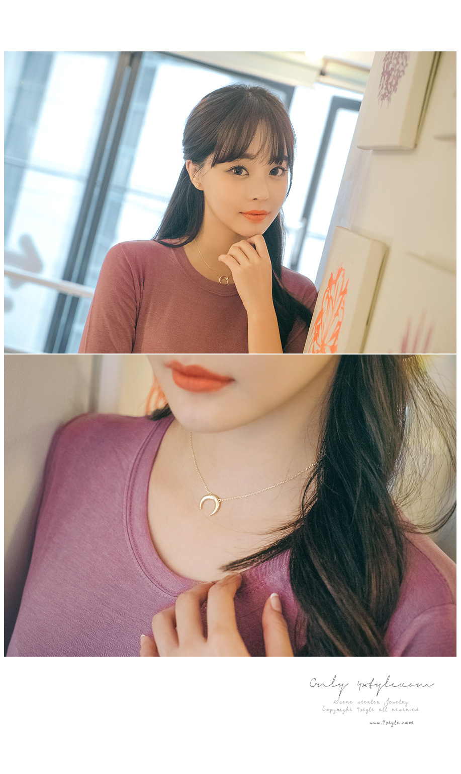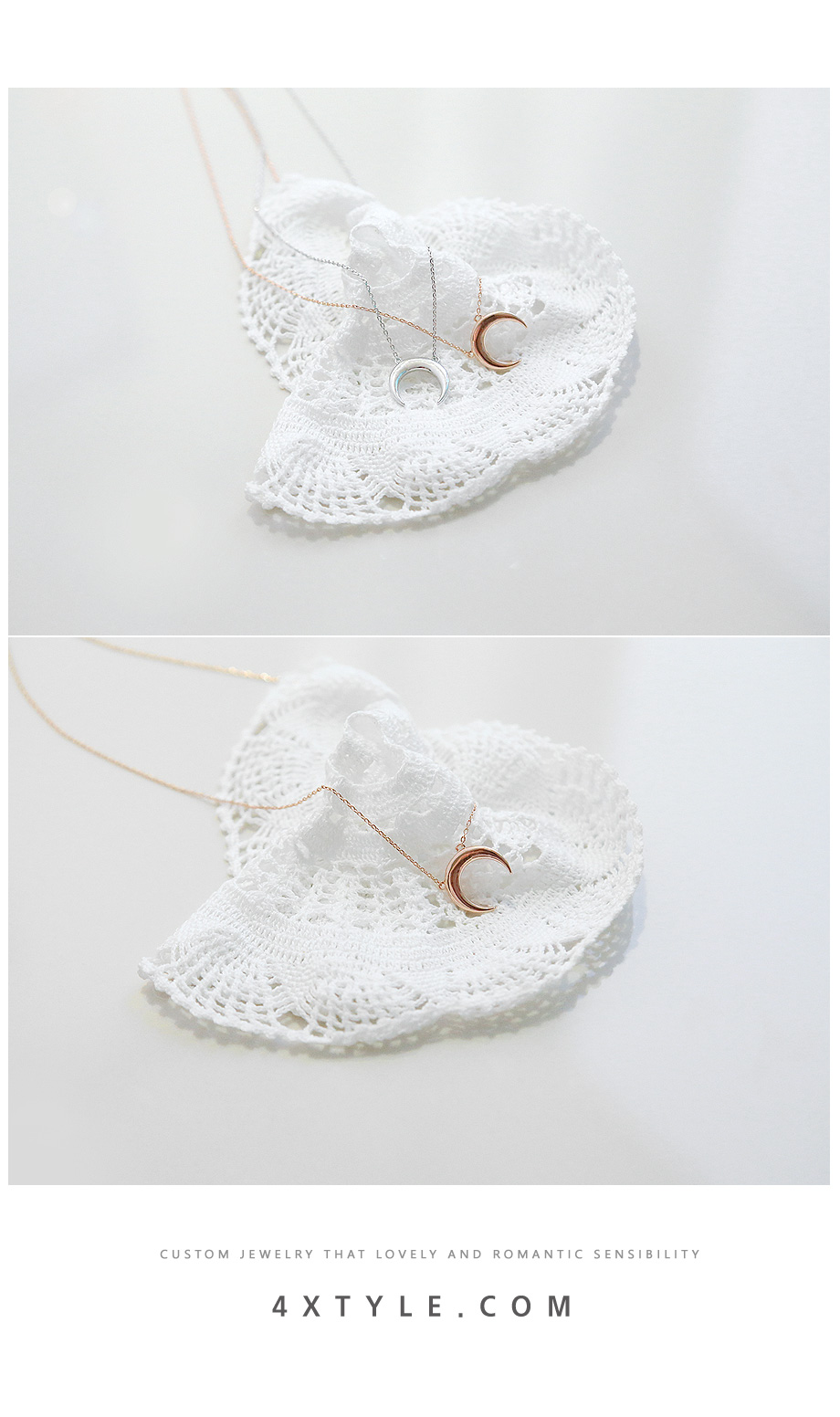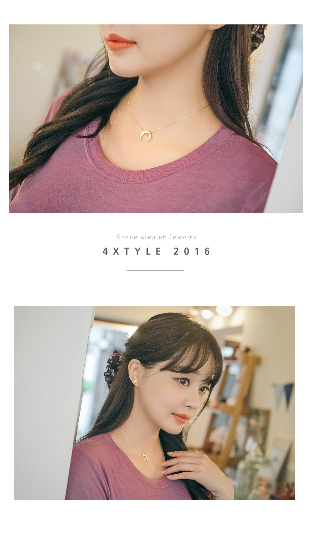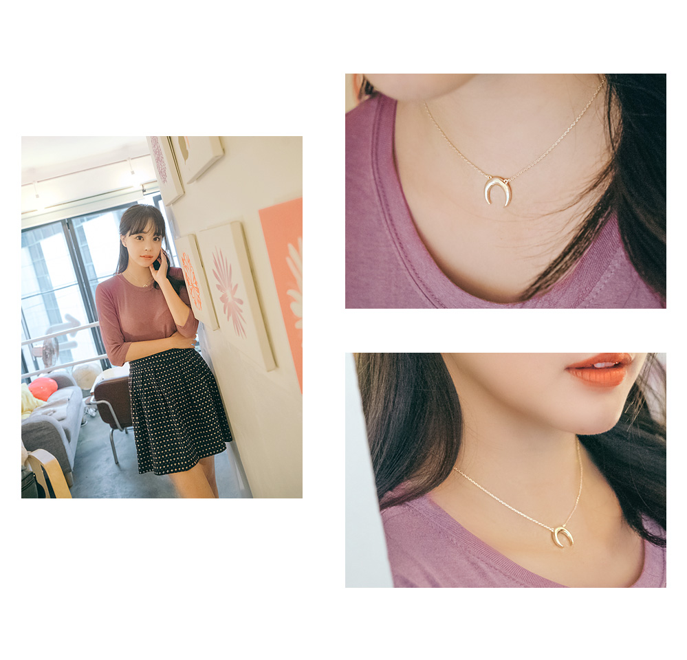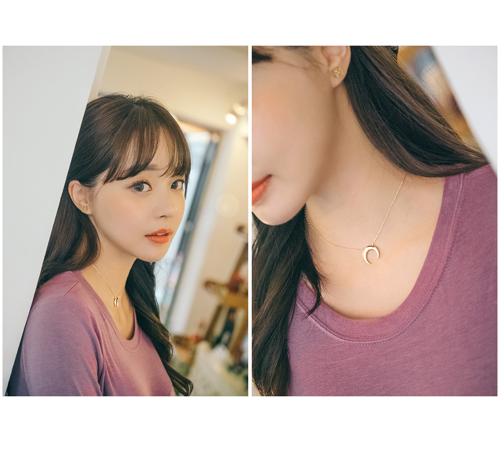 센스있는 초승달 팬던트가 달려있는 목걸이.