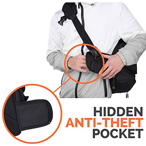 HIDDEN ANTI-THEFT POCKET - Safely store your valuables while in the outdoors or travelling. And you can always easily find your phone in the dedicated phone pocket on the shoulder strap.