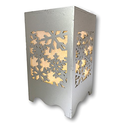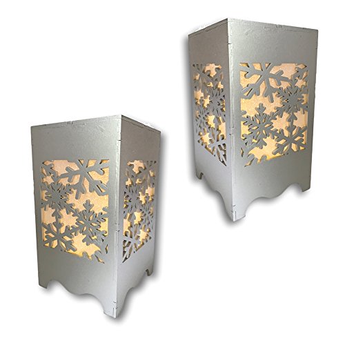 - SNOWFLAKE LUMINARY. Set of 2 shiny silver lighted boxes with a cute, traditional snowflake pattern cut-out on all 4 sides. Iridescent paper behind the snowflakes that are illuminated with 7 LED fairy lights.