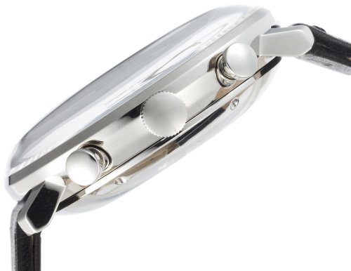 -. Feature : display has hour, minute, second, date, chronoscope with second stop / polished stainless steel case / calfskin strap with stainless steel buckle / matte silver dial / Self-winding movement J880.2 - ETA 7750