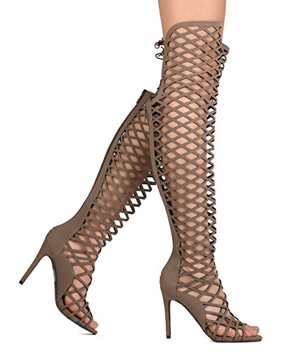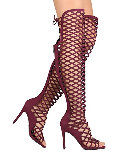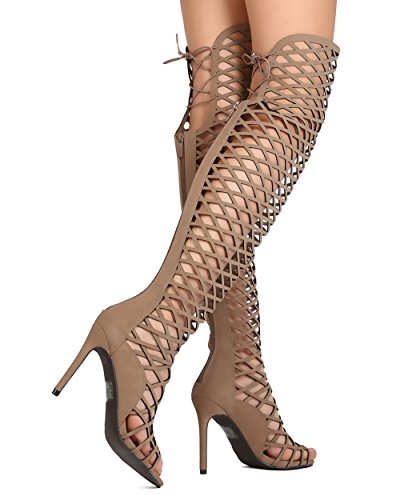 Binding : Apparel Product Description You will be head over heels for these saucy little numbers! They will perfectly compliment any outfit for any occasion! Make sure to add these to your collection, they definitely are a must have! The features for these thigh high boots include a faux leather upper with a rear zipper that reaches the knee then goes to a lace up thigh for a personalized comfy fit,a criss cross cut out dezign, and cushioned footbed that houses a Stiletto 4" heel. 0