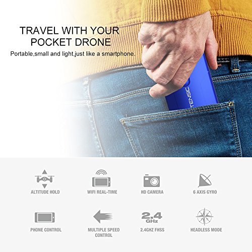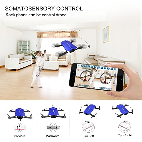 First Person View: features 720P HD WiFi camera, you watch the real time videos and save all your beautiful pictures and aerial videos directly on your smartphone, sharing them with families and friends.