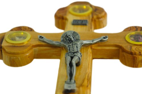 Small Olive Wood Cross Crucifix with Holy Essences