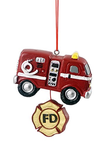 Fire Department Fire Truck with Badge Hanging Christmas Ornament