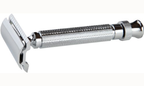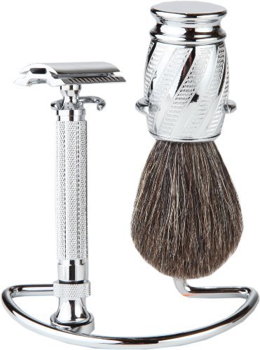 Shaving Gift Set With Safety Razor, 100% Badger Hair Shaving Brush, And All Metal Stand. Great Gift Item For Boyfriend, Husband, Or Father (Chrome Swirl)
