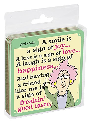 Tree-Free Greetings Set of 4 Cork-Backed Coasters, 3.75 x 3.75 Inches, Aunty Acid Good Taste (EC96503)