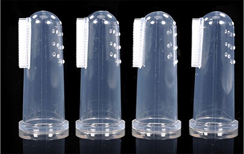 -. Feature : Helps to reduce plaque and tartar buildup,Keeps your pets' teeth healthy. / Material: Latex Silicone, comfortable.Very soft,give the pet time to clean teeth never hurt them. / Finger glove design slides easily onto your index finger. if you have larger fingers, place the brush into some hot water then put onto finger to slightly stretch the material. Gently massages your dog's teeth and gums while removing debris. / Establishing a daily routine of proper dental care may extend the life of your pet. / Fingertip Toothbrush are reusable, or can be thrown away with each use.