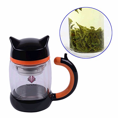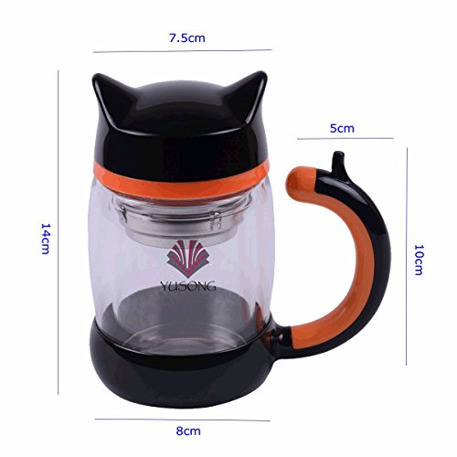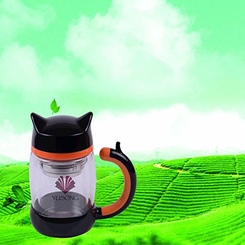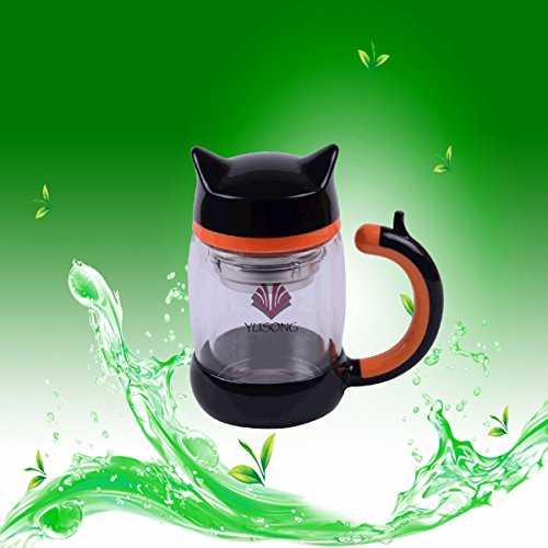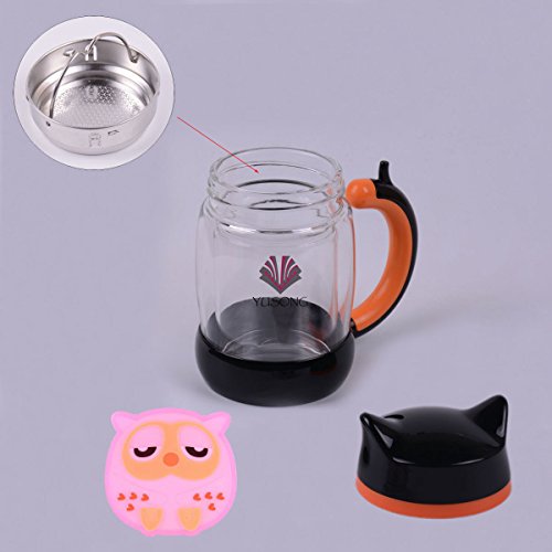 YUSONG Vacuum Insulated Mug Cute Owl Double Insulated Wall Teapot with Handle Lid (Black)