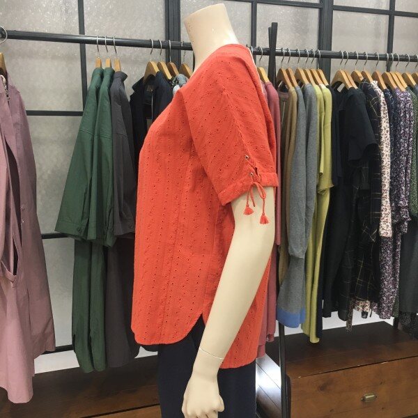 에스닉한 무드의 블라우스에요. 내추럴하면서도 시원해보이는 면 펀칭 원단과 아기자기한 꽃자수 디테일들로 봄부터 초여름까지 따스한 분위기와 정말 잘 어울리는 아이템이에요~ 소매 태슬끈 디테일로 여리여리한 분위기를 살려주며 네크라인은 라운드넥으로 깔끔하게 ! 퀄리티를 고급스럽게 살려주었어요. 기본 팬츠 혹은 데님위에 포인트 주기 좋은 아이템으로 얼굴을 확 살려주는 효과가 있어 추천드려요. 총장길이는 55사이즈 기준으로 62cm입니다.