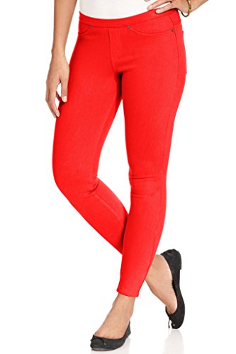 Original Jean leggings with faux front pockets, functional rear pockets. Color: Bombshell (Red)