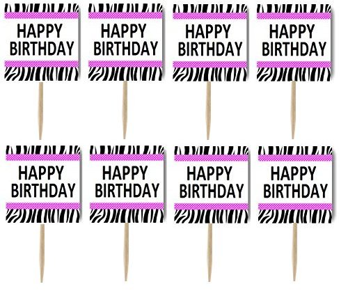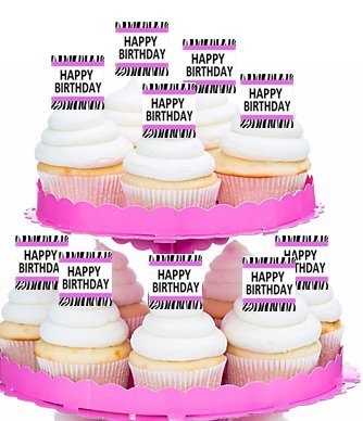 Cakesupplyshop Titem#3472a - 12pack Pink Zebra Happy Birthday Party Cupcake Decoration Picks Toppers