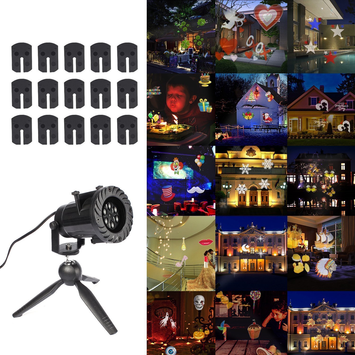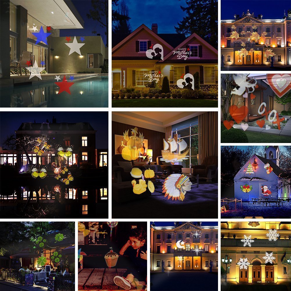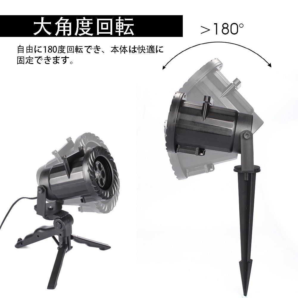 Indoor round base and outdoor anchor are also included and can be projected to indoor or outdoor home, garden, landscape, tree, flower, wall, lawn, fountain, sculpture, signboard and so on.