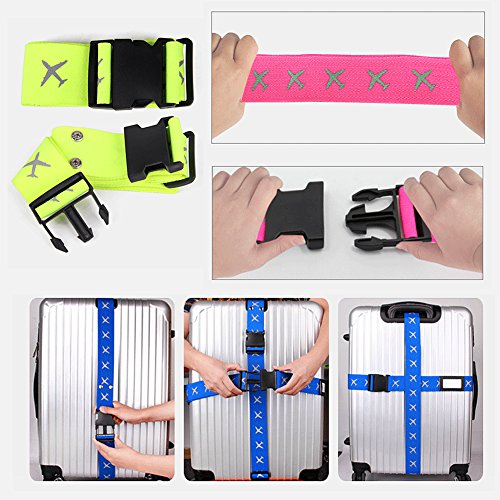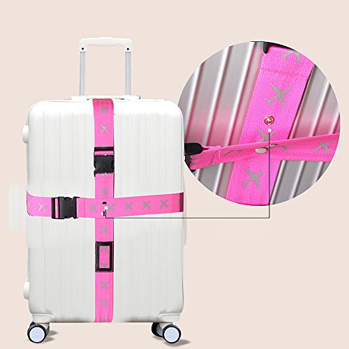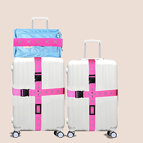 Attac Adjustable Superior Strength Extra Long Cross Luggage Strap belt Suitcase Travel Belt Tags (Pink)