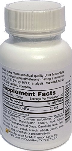 -. Feature : Made Using Pharmaceutical quality Ultra Micronized DHEA (Dehydroepiandrosterone) having a minimum purity of 99.5% HPLC analysis. + Manufactured by NSF Certified Company. / Sested Usage: Adults, as a dietary supplement, take 1 to 2 tablets daily. / Fountain of Life® and Micron 5 DHEA are registered trademarks of McPherson Labs, Inc. / Clinically tested in placebo controlled study on human subjects at prestigeous research universities and hospitals. / Recommeded by women's clinic worldwide, including USA, UK, Taiwan and China. Made in U.S.A.