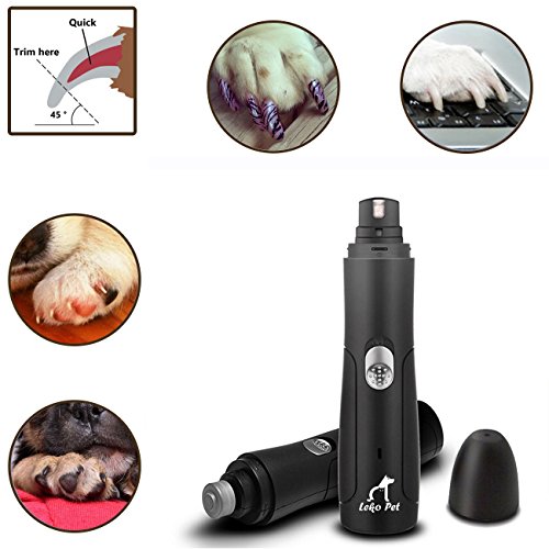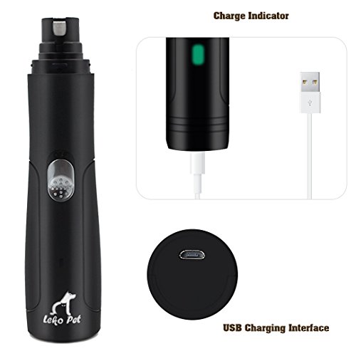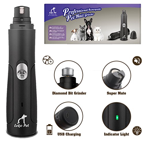 Pet Nail Grinder Trimmer Grooming - Leko Pet Electric Paws Toenails Trimmer with USB for Recharging, Diamond Bit Grinder, Super Mute, 3 Port Selection for All Size Dogs and Cats