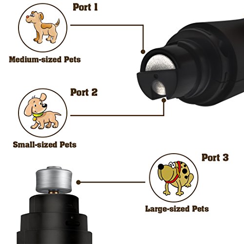 - [ Perfect for all dog and cat breeds ] Three size grinder ports design, you can use depending on your pet's size and characteristics of their nails, Works on all breeds of cats and dogs, hamsters, guinea pigs, rabbits and birds.