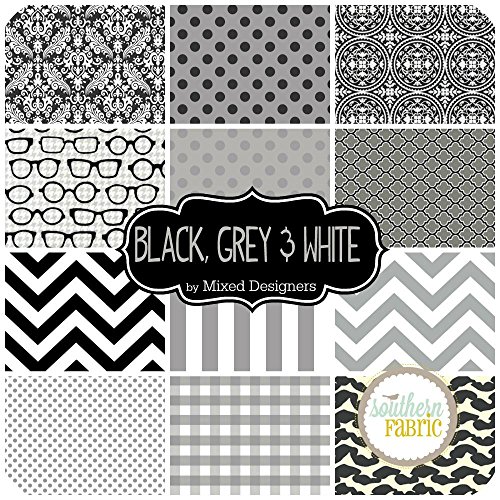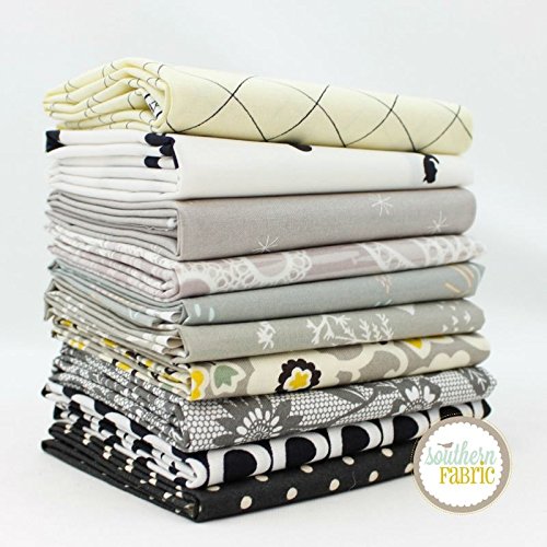 Black, White and Grey Fat Quarter Bundle (10 pcs) - Mixed Designers - Southern Fabric 18 x 21 inches (45.72cm x 53.34cm) fabric cuts DIY quilt fabric