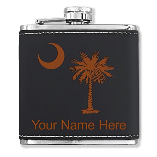 -. Brand : SkunkWerkz -. Color : Black -. EAN : 0652043627975 -. Feature : Flask is laser engraved with the image that you see in the photo. Your name or personalized message will be engraved below the image. / Measures 4.25" tall and 3.75" wide. Holds 6 fluid ounces / Constructed of stainless steel with a synthethic black leather wrap. / You may have one line of engraved text - 20 characters maximum. The engraved area and text will be orange in color. / Click the "Customize Now" button to begin customizing your flask. -. Label : SkunkWerkz -. Manufacturer : SkunkWerkz -. MPN : FL-K-214 -. PartNumber : FL-K-214 -. ProductGroup : Kitchen -. ProductTypeName : KITCHEN -. Publisher : SkunkWerkz -. Studio : SkunkWerkz -. Title : Faux Leather Flask - Flag of South Carolina - Personalized Engraving Included (Black) -. UPC : 652043627975