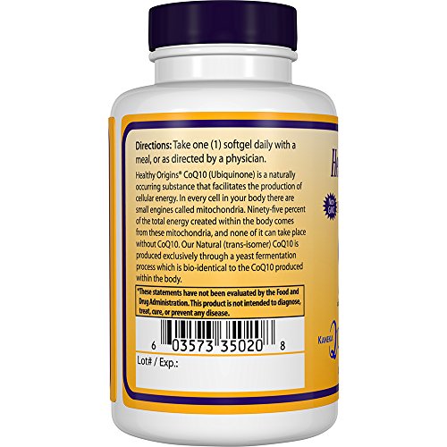 -. Feature : Gold Standard of CoQ10: Kaneka Q10, the only CoQ10 ingredient manufactured in the U.S., is the world's purest, most thoroughly researched CoQ10 ingredient available. Fermented from yeast, Kaneka Q10 is bio-identical to the CoQ10 produced within the body. / Kaneka Q10 Research & Development: Kaneka Q10 has 30 years of manufacturing, safety and clinical studies supporting the quality and reliability of the product. Kaneka Q10 is the CoQ10 ingredient of choice for researchers worldwide. / Healthy Origins CoQ10: Healthy Origins has the most comprehensive line of Kaneka Q10 CoQ10 products available (100,200,300,400 and 600 mg) to suit your potency requirements. / Non-GMO / This product does not contain Sugar, Yeast, Wheat, Gluten, Soy, Fish, Shellfish, Peanuts, Egg or Milk.