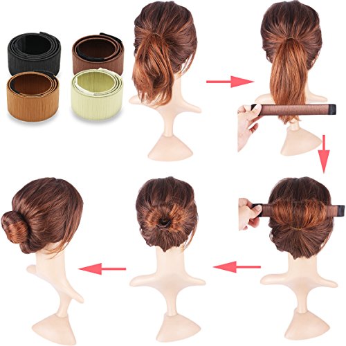 Studio : Ranphykx Publisher : Ranphykx Binding : Misc. Product Description How to use: 1. Put your hair into a ponytail. 2. Straight the hair bun tool, and put your hair in between the two bands. 3. Hold the both ends together, and roll upwards to the base of ponytail. 4. Bend and snap together the two bands. 5. Make little adjustment to make sure the bun maker is full covered by your hair. This is the simplest way to make a bun. You can use your talent or look up some Youtube videos to discover other usage. It's easy to do but some times it's easier to watch someone do it first rather than reading it. Tips: Choose the color of hair styling disk that match your hair color the closest or just similar Note: If you have a longer and thicker hair, two bun maker are more appropriate Product Information: Item: Hair accessories bun maker Material: Synthetic hair Product size: 8.46 x 0.98 inches Package Includes: 4 x Hair Bun Maker 0