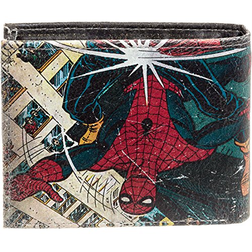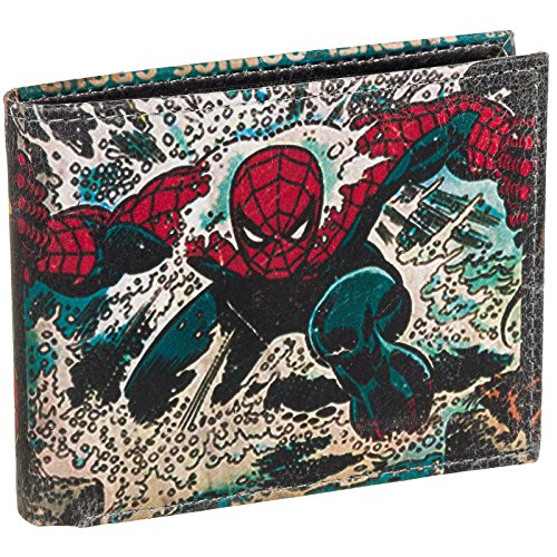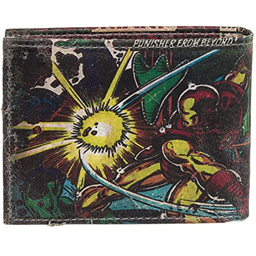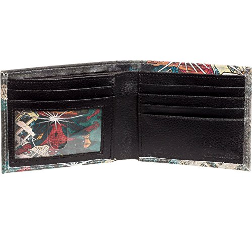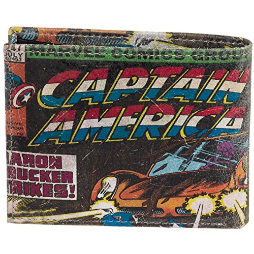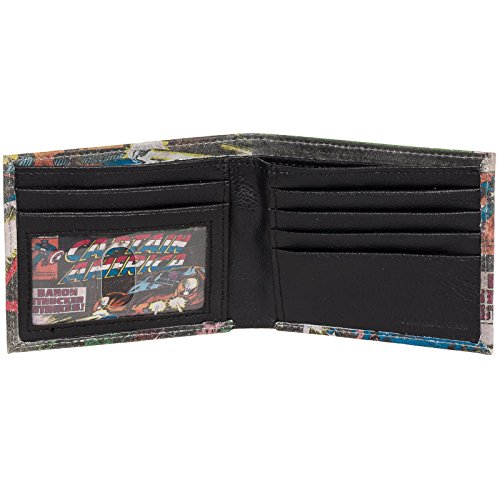 -. Feature : OFFICIALLY LICENSED - You can be assured that this wallet is an officially licensed product that genuinely represents Marvel and its beloved characters. / CLASSIC COMICS - These wallets are covered by pages and characters from classic Marvel Comics issues through the ages. The colorful and bold P.R.Ints show off your favorite superheroes fighting crime and keeping the peace in the Marvel Universe. Spiderman, Captain America, Iron Man, Thor, and Wolverine are just a few of the mighty men that grace the various covers of this bifold. / MULTIPLE FEATURES - This wallet features a genuine leather construction with a spacious interior that will keep you organized on the go. You will find 5 credit card slots, I ID window, 2 utility pockets, and a double currency pocket. / GIFT BOX - Each wallet is presented in a gift box, which makes it the perfect give for the avid Marvel fan. Give for birthdays, graduations, and Father's Day! / MEASUREMENTS - Measures 4.5" x 3.5" x 0.75" closed