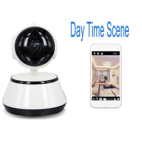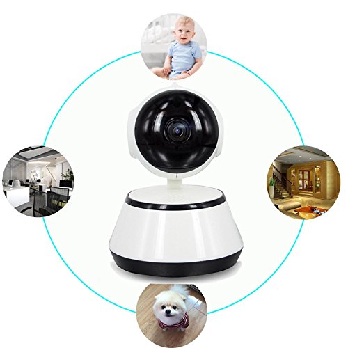 -. Feature : VRXN SECURITY CAMERA: 720p High-definition, 90° wide-angle advanced glass lens combined with 355° horizontal & 90° vertical rotation range create a complete 360° coverage. High resolution live streaming delivers you a crystal clear picture with more details to know what's going on when you're away from home. / ONE KEY CONFIGURATION:One Key WiFi Configuration makes setup so quick and easy. Just plug in the power cable, download the V380 App and set it up via your iPhone or Andriod smartphone, remote access to the wireless security camera on iPhone/ iPad/ Android phone/PC, keep an eye on your loves and belongs anywhere anytime. / MOTION DETECTION: Check it on your phone even you are far away from home. Get informed about every movement in your house via with motion and sound triggered push notifications along with a 5-second video of the activity will be saved on the TF card. Download the screen captures and video on your phone, do not miss any suspicious image / NIGHT VISION: Night vision up to 22-feet, never miss a moment, day or night, with visibility up to 16 feet in complete darkness. Communicate with family, friends and your pets on mobile devices. / ADVANCED VIDEO RECORDING: Record, store and review footage using a Micro SD card(Minimum support 8G, Maximum 64G) and manage directly from your mobile device; Alert pictures will be stored on the SD card, and you can playback the videos on your phone. Loop recording: When the memory full, it will auto cover the oldest video files.