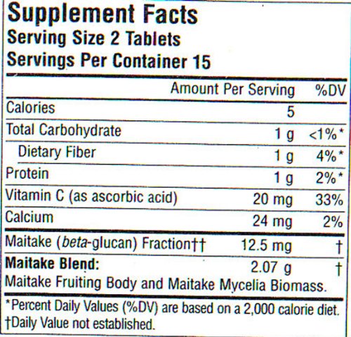-. Binding : Health and Beauty -. Brand : Planetary Herbals -. Department : Health and Beauty>Health and Wellness -. EAN : 0021078104858 -. Feature : Maitake is a Japanese mushroom closely related to polyporus / The word maitake is literally translated from Japanese as dancing mushroom / Maitake is recognized by its small overlapping tongue- of fan-shaped caps -. IsAdultProduct : 0 -. IsAutographed : 0 -. IsMemorabilia : 0 -. Label : Planetary Herbals -. LegalDisclaimer : * These statements have not been evaluated by the Food and Drug Administration. This product is not intended to diagnose, treat, cure or prevent any disease. ** Always refer to the manufacturer's label on the product for description, recommended dose and precautions. -. Manufacturer : Planetary Herbals -. Model : 021078104858 -. MPN : 021078104858 -. NumberOfItems : 1 -. PackageQuantity : 1 -. PartNumber : 021078104858 -. ProductGroup : Health and Beauty -. ProductTypeName : HEALTH_PERSONAL_CARE -. PublicationDate : 2013-08-20 -. Publisher : Planetary Herbals -. ReleaseDate : 2015-06-22 -. Size : 30 -. Studio : Planetary Herbals -. Title : Planetary Herbals Dr. Nanba's Maitake-PRO Tablets, 30 Count -. UPC : 021078104858