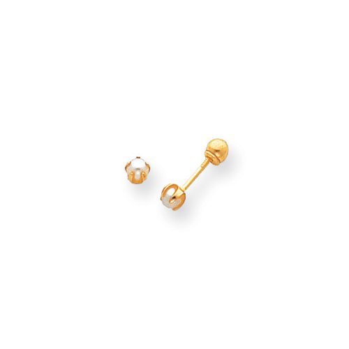 Two in one reversible stud design fashioned from 14k yellow gold featuring a prong set 2.5mm freshwater cultured white pearl on one side, and a screw on 3mm yellow gold hollow ball on the other that doubles as the back. Due to the nature of pearls, please allow for slight variations in color. Pearl treatment: bleached. Made in the U.S.A.Feature