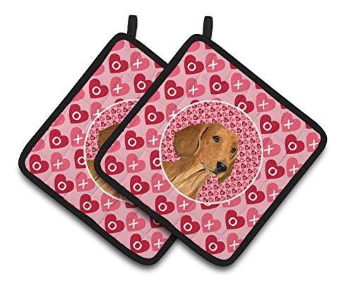 Caroline's Treasures Dachshund Hearts Love & Valentine's Day Portrait Pair of Pot Holders SS4487PTHD, 7.5HX7.5W, Multicolor