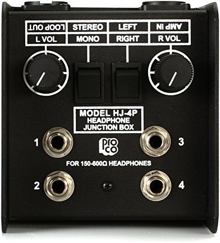 -. Brand : Pro Co -. EAN : 0703272124008 -. Label : Pro Co -. Manufacturer : Pro Co -. MPN : HJ4P -. PackageQuantity : 1 -. PartNumber : HJ4P -. ProductGroup : Musical Instruments -. ProductTypeName : SOUND_AND_RECORDING_EQUIPMENT -. Publisher : Pro Co -. Studio : Pro Co -. Title : Pro Co HJ4P 4-Ch Headphone Junction Box -. UPC : 703272124008