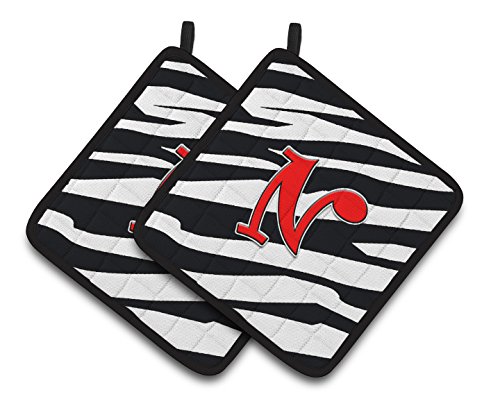 Caroline's Treasures Monogram Initial N Zebra Red Pair of Pot Holders CJ1024-NPTHD, 7.5HX7.5W, Multicolor