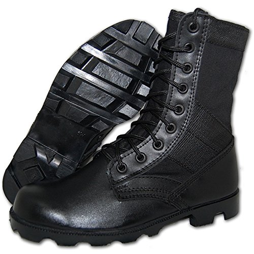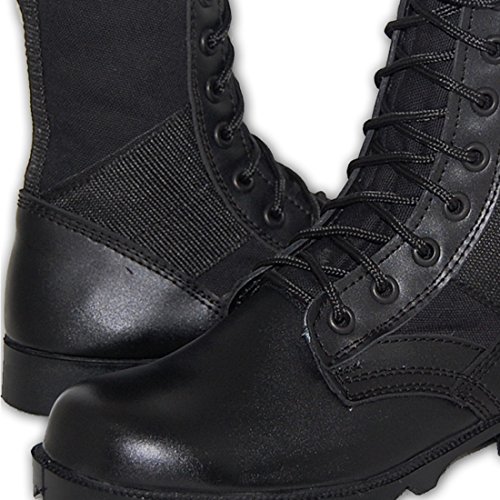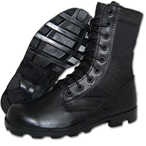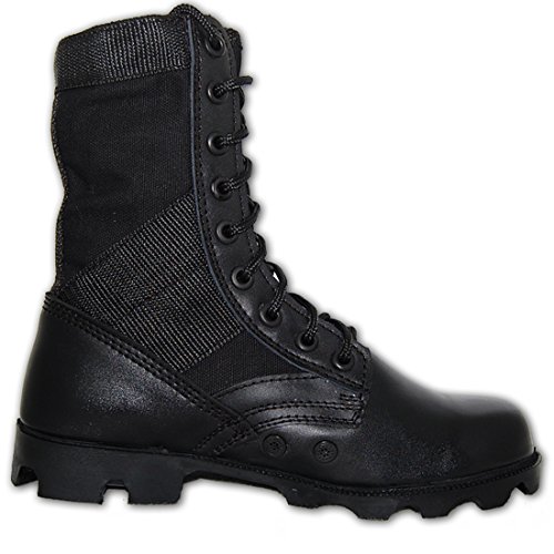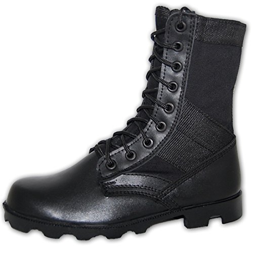 -. Binding : Apparel -. Brand : Shoe Artists -. Color : Black -. Department : mens -. Feature : Classic combat jungle Boots. / Lightweight. Padded insoles. / Keeps feet dry with vented holes in the instep to aid in ventilation and drainage of moisture. / Unlined uppers for cool breathability with your every step. / Rubber outsoles for durable cleat traction. -. ProductGroup : Shoes -. ProductTypeName : SHOES -. Title : COMBAT Jungle Boot Leather-Canvas Black, Men