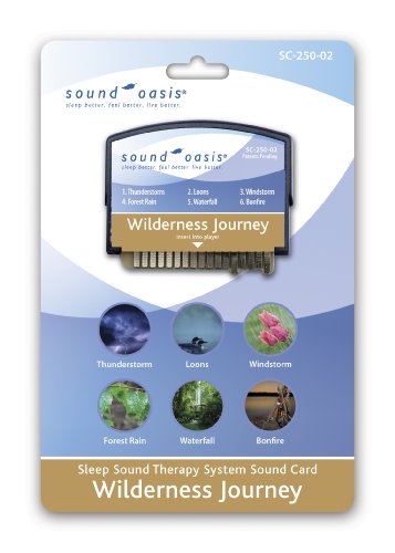 Studio : Headwaters, Inc. Publisher : Headwaters, Inc. Product Description Sound Oasis Sleep Sound Therapy System with Bonus Wilderness Journey Sound Card. Studies have shown that we sleep better and relax easier when we can block out distracting noise and listen to natural sounds. Sound Oasis sound machines are used in hospitals, clinics and in homes around the world to help people fall asleep easier, experience higher quality sleep and provide relief from tinnitus. The S-550-05-02 provides effective, natural, prescription free sleep therapy. Product features include 6 professional quality authentic nature sounds: Ocean Surf, Stream, Rain, White Noise, Summer Night and Wind. The world's only sound card expansion technology for adding more sounds. A 4 position auto shut off timer: Play sound continuously or auto shutoff gently after 30, 60 or 90 minutes. The memory button repeats last sound experience. A headphone/speaker jack. Powered by AC adapter (included) or 4 "AA" batteries (not included). Omni directional reflective speaker projects sound from the back of unit for rich, deep sound. Use upright, on its back or mounted to a well. Includes BONUS Sound Oasis Wilderness Journey Sound Card Model SC-250-02. Enjoy 6 additional peaceful outdoor sounds: Thunderstorm in the Wilderness - Unwind to the exhilarating, but soothing sound of distant thunder as gentle rain falls upon a remote lake; Forest Rain - Relax to the steady tapping of refreshing mountain rain as it pelts the dense forest floor; Waterfall - Block out unwanted noise or drift off to sleep with the natural Owhite noise" effect of a thundering waterfall; Loons on Wilderness Lake - Experience the peacefulness, yet sense of adventure associated with the lingering, captivating calls of loons on a secluded lake; Mountain Valley Windstorm - Nestle in as a powerful, but calming windstorm blows through a deep mountain valley; Roaring Bonfire - During the still of a wilderness night, enjoy the solitude and warmth of a roaring bonfire with mesmerizing, glowing embers. 0