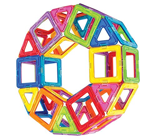 -. Feature : The building blocks are designed with magenets that ensures connectivity every time you play or build. / Intelligent magnetic construction set for Children's brain development. / Safe for kids. Made of ABS plastic magnets conform to CE, ASTM, and EN71 . / Package includes 28xSquare, 16x Small Triangle, 8x Big Triangle, 6x Hexagon, 2x Car wheel and 16x Educational Cards. / A classic creative and learning activity!
