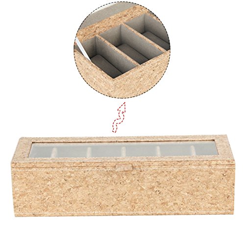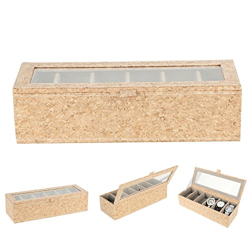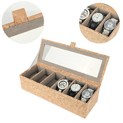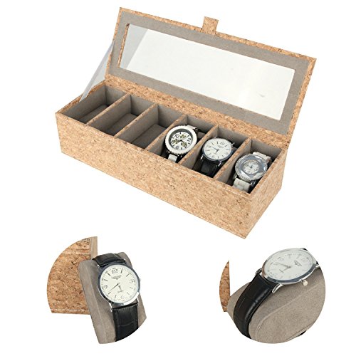 Ranslen Watch Boxes 6 Slots Watch Storage Case Holder Organizer for Men Glass Top Cork