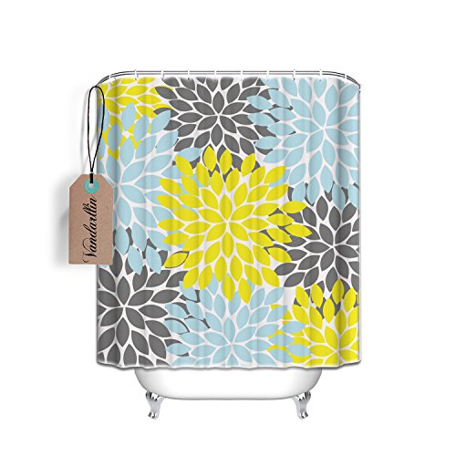 Multicolor Dahlia Pinnata Flower Customized Bathroom Shower Curtain - Waterproof and Mildewproof Polyester Fabric Bath Curtain Design,Yellow,Grey,Blue,72"W x 72"H