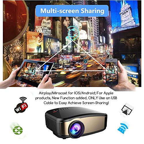 2018 Newly Updated Wireless Wifi Projector - WEILIANTE Mini Video Projector can project directly from your iPhone/Android smartphones through wifi ( Support IOS 9.0-11; Android 4.4 and above), No Need Wireless dongles or HDMI Adapters, or download any apps; Plus, compared with others, this updated edition add a screensharing function. For IOS system, plug an Apple lightning cable to the USB port of WEILIANTE Video Projector, you can enjoy a Big Screen instantly! More Simple and Stable!