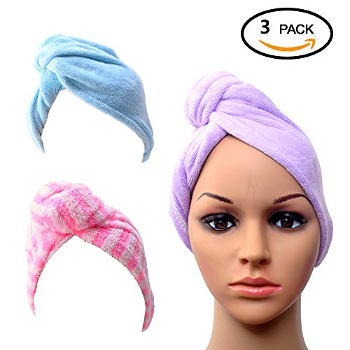 Dry Hair Towel Wrap Turban Dry Hair Cap for Bath Spa Soft Towel Reduce Hair Drying Time 3 Pack By SMYLLS
