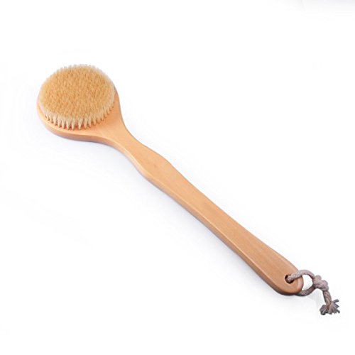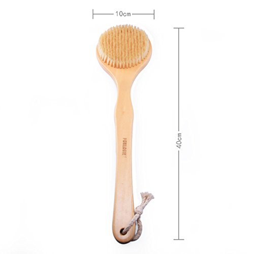 Body Brush for Dry/Wet Brushing - Natural Bristle Long Handle for Shower Back Skin Exfoliating Scrub Bath Brush - FUNLAVIE