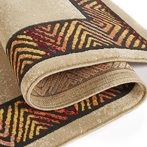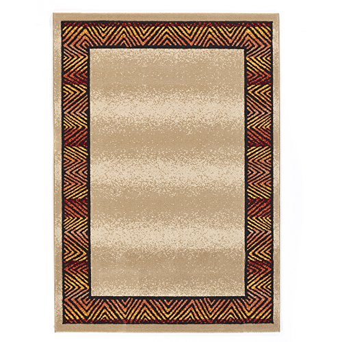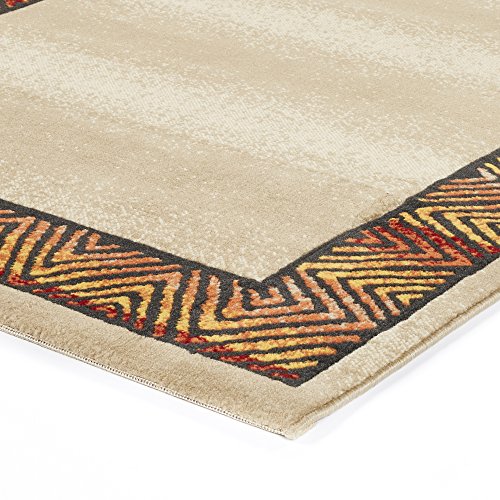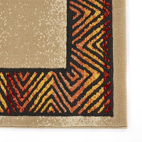 Carpet Art Deco Accent Rug, 4' x 5'6, Beige, Orange, Black