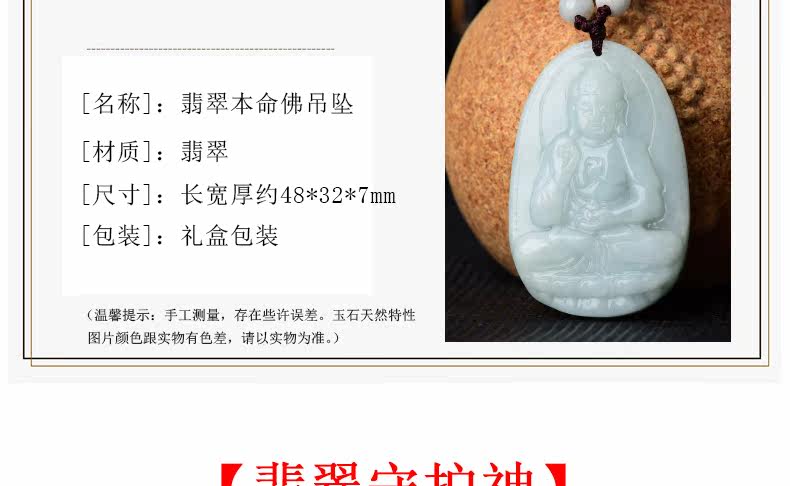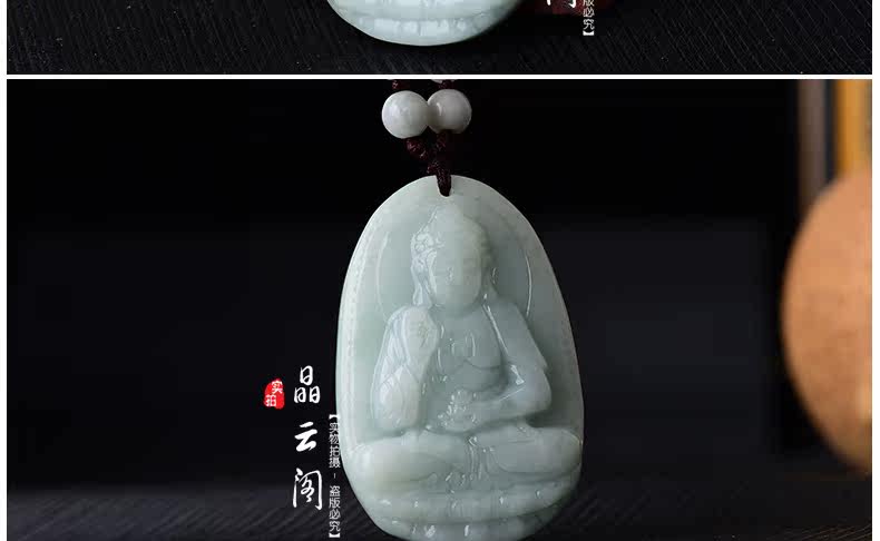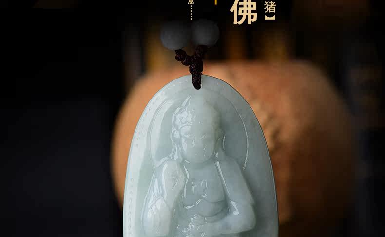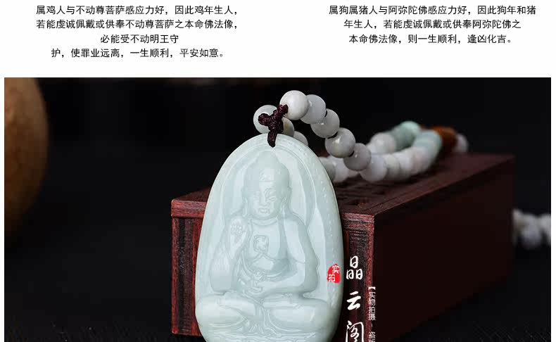 开光 翡翠玉阿弥陀佛菩萨吊坠 生肖属狗猪本命佛男女士项链挂件