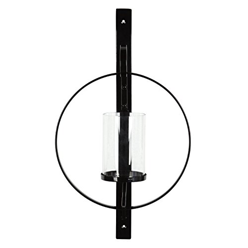 Studio : Uniek Publisher : Uniek Binding : Kitchen Product Description Bring a glamorous accent and warmth into your home with this lovely round metal wall candle holder sconce. This metal sconce measures 21.75 inches high and the metal post that attaches to the wall is 1.5 inches wide. The metal candle holder base is 4 inches wide and is recommended for use with a 3 or 3.5 inch base pillar candle. Included is a glass pillar 6 inches high. The decorative metal circle has a diameter of 12.5 inches. Use two nails or bolts through the pre-drilled holes to fasten securely to the wall (not included). This glamorous metal sconce is truly a gorgeous statement piece perfect for your home! 0