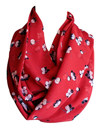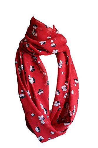 Binding : Apparel Product Description Flowers on Red Fabric Infinity Scarf Loop Scarf, Circle Scarf, spring - fall - summer - winter fashion. Machine Gentle Cool Wash with similar colors, Gentle Iron, Lay Flat To Dry, Do Not Wring Produced in smoke and pet free environment. 0
