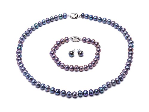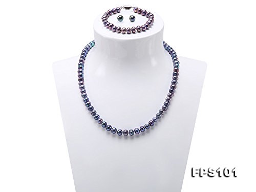 Freshwater Pearl necklace,bracelet and set, made with 7-8mm blue cultured freshwater flatly round pearls.