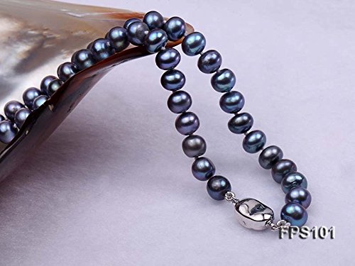 Description *Freshwater Pearl necklace,bracelet and set, made with 7-8mm blue cultured freshwater flatly round pearls.