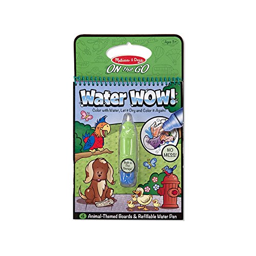Studio : Melissa Doug Publisher : Melissa Doug Binding : Toy Product Description No-mess painting for kids! This exciting paint-with-water coloring book includes four reusable pages and a refillable water pen. Simply use the pen to color in each scene--details and vibrant color appear with every stroke! Then let the page dry to erase the pictures and fill it in again and again. This animal-themed book includes four scenes to color, and a search-and-find activity for each scene. The chunky-sized water pen is easy for kids to hold and stores neatly right in the front cover, so Water WOW books make ideal travel activity books and travel toys for kids!