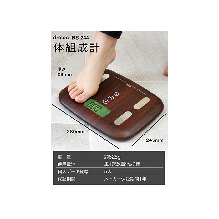 DRETEC 드 re 텍 체중태 조성계 다크 우드 BS-244DW