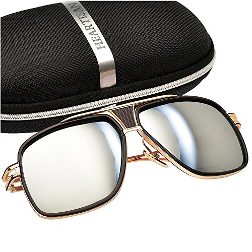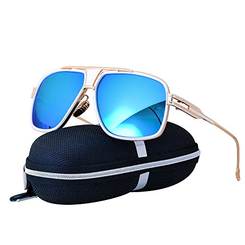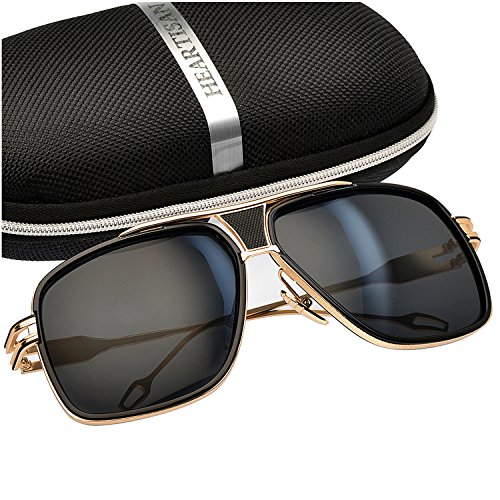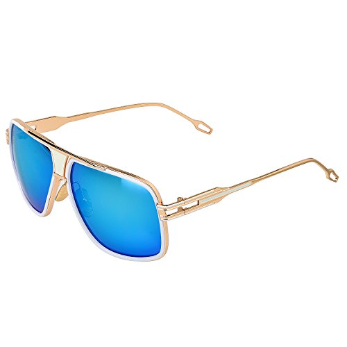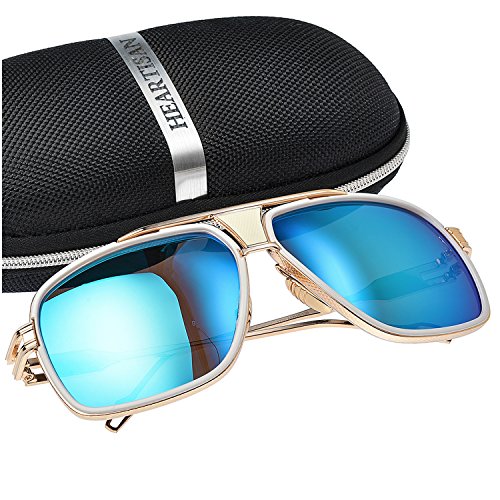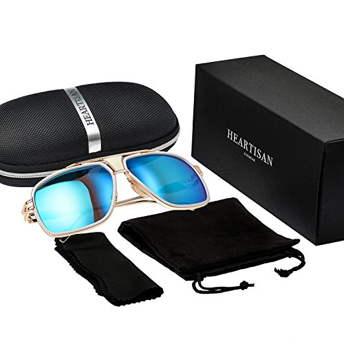 Heartisan Eyewear-Gold Frame Square Aviator Sunglasses for Men,Blue LensFEATURES AND BENEFITSDurable & Shatterproof