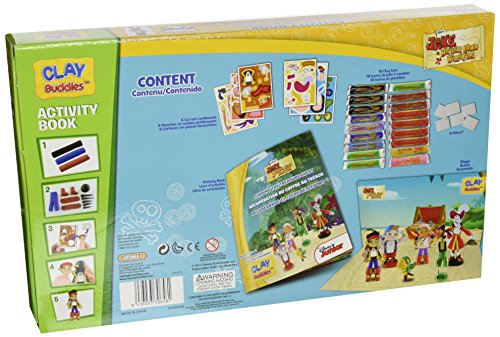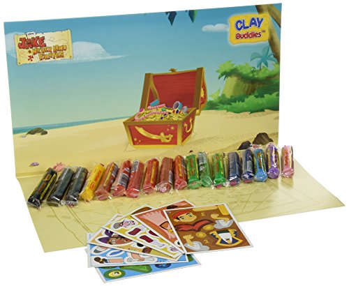 The Jake and Pirates Clay Buddies are here! Your friends to mold have arrived. The real Jake and Pirates Clay Buddies are now created with your own hands! Shape your favorite Jake and Pirates characters! You can shape, have fun and complete your collection with the Jake and Pirates Clay Buddies Super pack with 18 modelling clay bars a big storybook where the kids will play with their own clay licensed clay buddy. In the box you will have also a big scene to put your figurines and materials to create and mold 6 figurines. Instructions and Velcro included to mold your figure.Feature